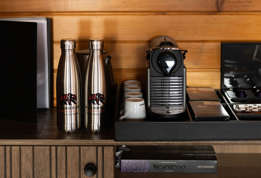 Re-usable Klahoose Wilderness Resort stainless steel water bottles (each guest may take one home)
